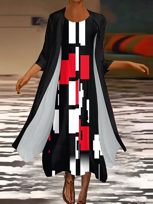 This Women's Dress Set Maxi Dress Shift Dress Summer Dress Casual Graphic Geometric Layered Print Maxi Dress 3/4 Length Sleeve Crew Neck Daily White Red Spring Fall Regular Fit combines elegant design with practical functionality. Every detail has been carefully considered to ensure you get the premier possible experience. The first-class construction means this product will serve you well for years to come.