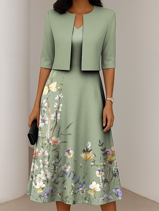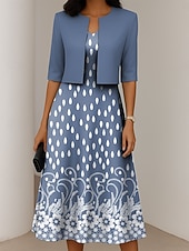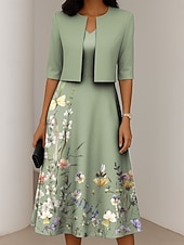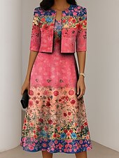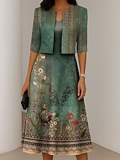 More information about Women's Dress Set A Line Dress Summer Dress Elegant Casual Ombre Floral Print Midi Dress Half Sleeve V Neck Formal Vacation Blue Dark Green Orange Summer Spring Regular Fit