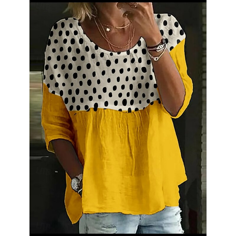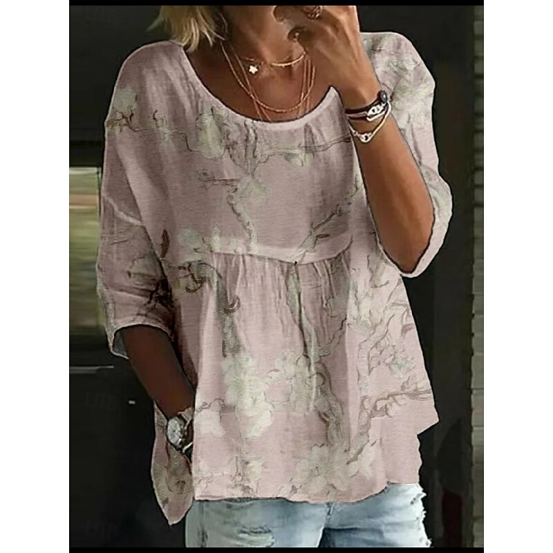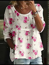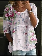 This Women's Blouse Floral trendy 3/4 Length Sleeve Crew Neck Regular Tops Daily Holiday Print Yellow Pink Royal Blue Blue Purple Summer combines elegant design with practical functionality. Every detail has been carefully considered to ensure you get the best possible experience. The first-class construction means this product will serve you well for years to come.