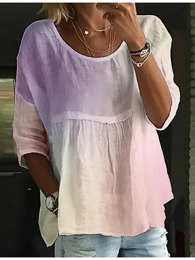 popular ! Women's Blouse Color Gradient contemporary 3/4 Length Sleeve Crew Neck Regular Tops Daily Holiday Print Pink Navy Blue Blue Purple Summer