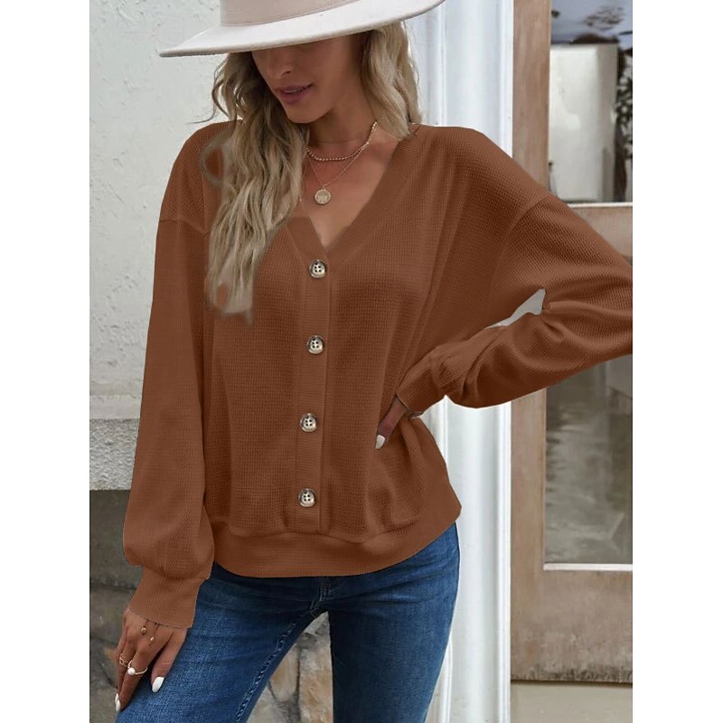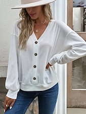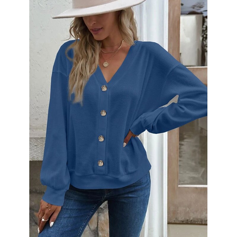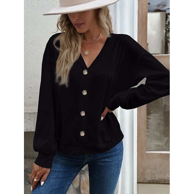 This Women's Blouse Solid Color trendy Casual Long Sleeve V Neck Regular Tops Daily Buttons Black White Blue Green Khaki Spring Fall combines elegant design with practical functionality. Every detail has been carefully considered to ensure you get the best possible experience. The first-class construction means this product will serve you well for years to come.
