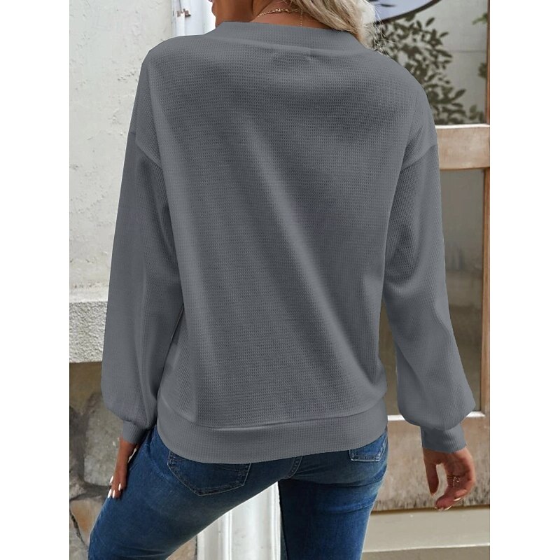 Why Choose Women's Blouse Solid Color up-to-date Casual Long Sleeve V Neck Regular Tops Daily Buttons Black White Blue Green Khaki Spring Fall?