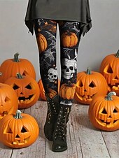 More information about Women's Leggings Cozy Leggings Vacation Vintage Ethnic Style Full Length High WaistPantsHalloween Skull Pumpkin Printing Thermal thermal cozy Stretchy Vacation Casual Daily Black Fall Winter Slim