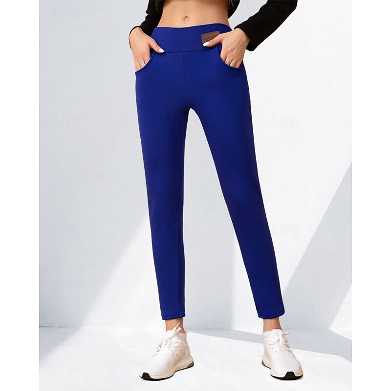 Women's Fleece Pants Slacks Leggings Casual Full Length Natural Plain Elastic Waist Comfy Vacation Holiday claret Black Dark Navy Sky Blue Winter Regular Fit 8