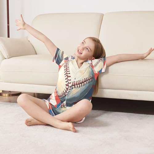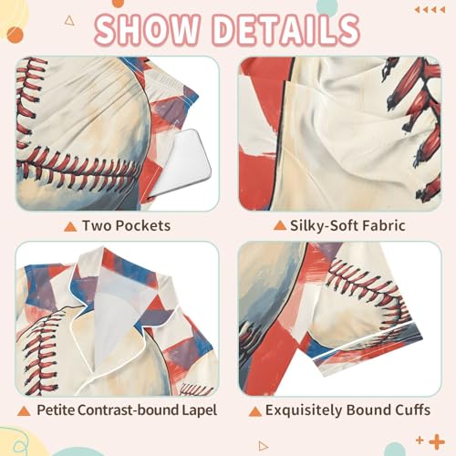 More information about ALAZA Baseball on Colorful Satin Pajamas Set Short Sleeve Button Down Sleepwear Summer Pjs 2 Piece