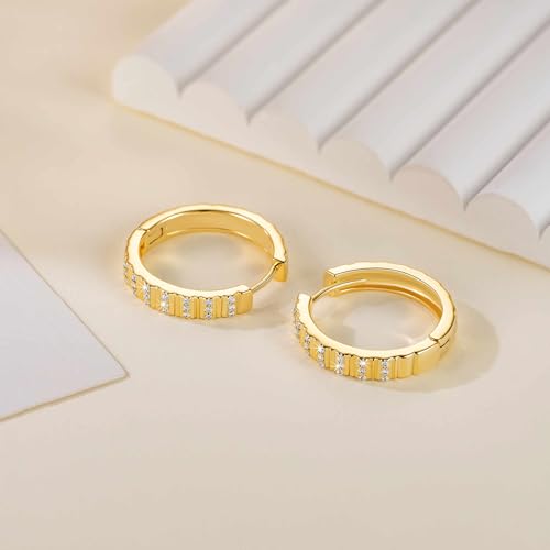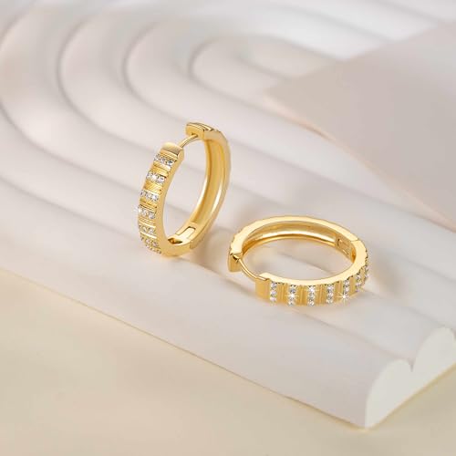 • [SECURE SETTING, LASTING BRILLIANCE] Each of the 42 zirconias on the 14k gold plated hoop earrings is precisely and securely set with expert craftsmanship. Built to withstand daily wear and occasional bumps, the stones remain firmly in the womens earrings