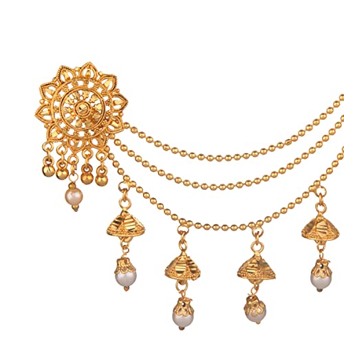 • Embellished with triple layer ear chain, metal ball beads, hair accessory, this gold plated ear support chain for women are suitable on ethnic saree, gowns, wedding costumes, festival dresses, dance wear, gowns, party wear, jewelry and as fashion costume accessories.