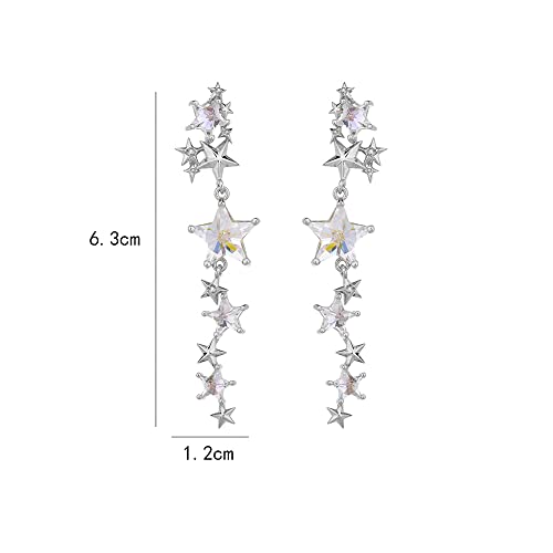 • Size & Details --- Crystal Long Star Dangle Size 0.5*2.5 Inches, Shiny Tassel CZ Stars Celestial Charms Drop Dangle Stud Constellation Earrings.