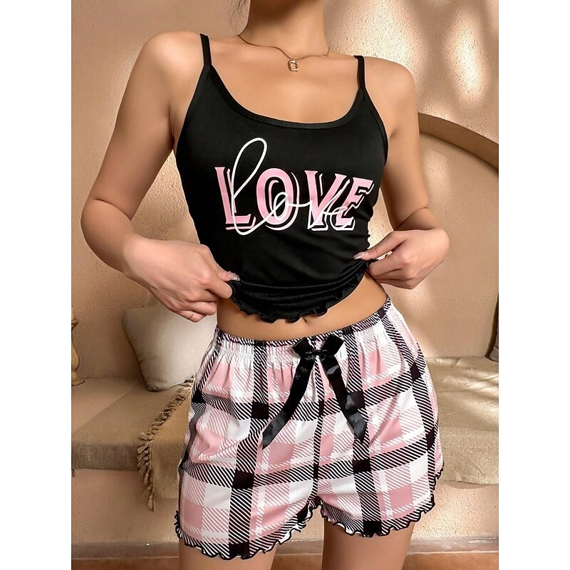 $13.99 - Women's Pajama Set Casual Comfort Heart Grid / Plaid Letter Elastic Waist Strap Top Shorts Home Daily Sleeveless Straps Black White Gold Brown Summer Regular Fit 2025. Shop for cheap Women's Sleep Tops & Bottoms online? Buy at lightinthebox.com on sale today!