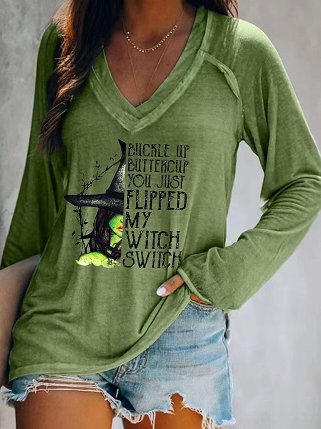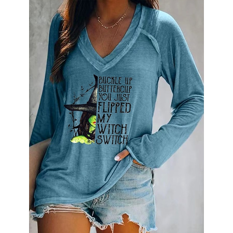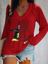 This Halloween Women's T shirt Witch Graphic Letter Vintage trendy Classic Long Sleeve V Neck Regular Tops Daily Print Red Dusty Blue Green Gray Spring Fall combines elegant design with practical functionality. Every detail has been carefully considered to ensure you get the best possible experience. The superior construction means this product will serve you well for years to come.