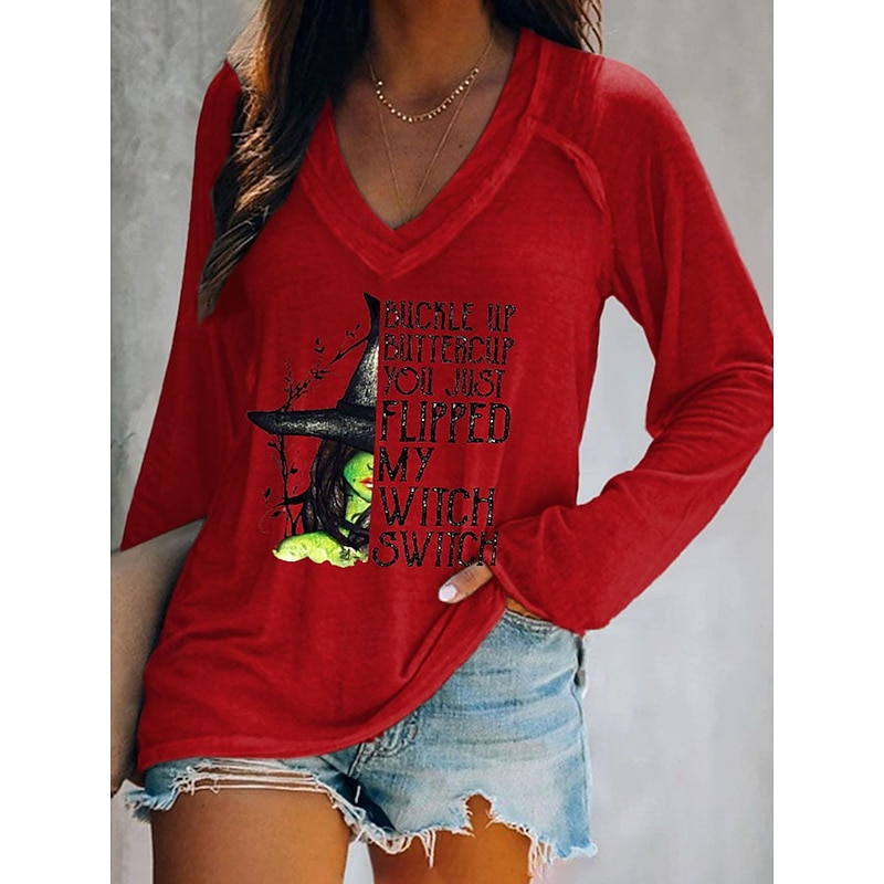 At www.ecard-tech.com.tw, we believe in providing our customers with only the best products. This Halloween Women's T shirt Witch Graphic Letter Vintage Stylish Classic Long Sleeve V Neck Regular Tops Daily Print Red Dusty Blue Green Gray Spring Fall is designed with attention to detail and high quality craftsmanship that you can see and feel. Whether you're looking for functionality, style, or both, this product delivers exceptional value.