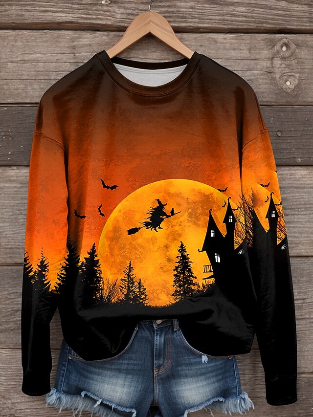 Why Choose Halloween Women's Sweatshirts Witch Graphic Casual Long Sleeve Crew Neck Regular Tops Street Dailywear Print Black Yellow Orange Fall Winter?