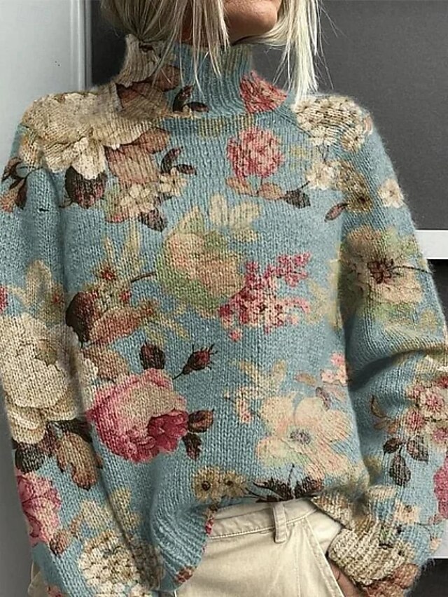 Why Choose Women's Pullover Vacation Daily Graphic Tree Christmas Bell Ribbed Turtleneck Print Long Sleeve Regular Tops Knit Outdoor Daily Holiday Royal Blue Blue Fall Winter?
