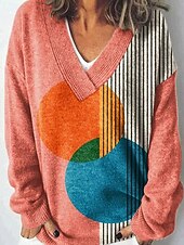 popular ! Women's Sweater Fashion Color Block Ribbed V Neck Knitted Long Sleeve Regular Tops Knit Holiday Going out Weekend Orange Winter