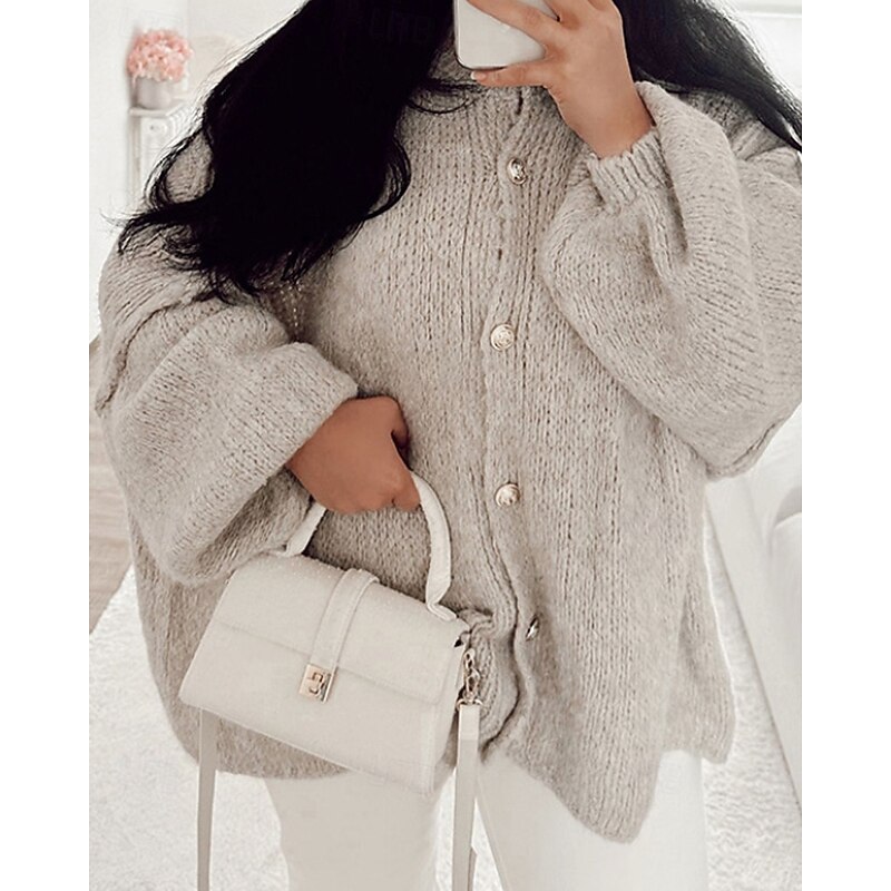 - Stay cozy and sophisticated in our loose-fit cardigan sweater