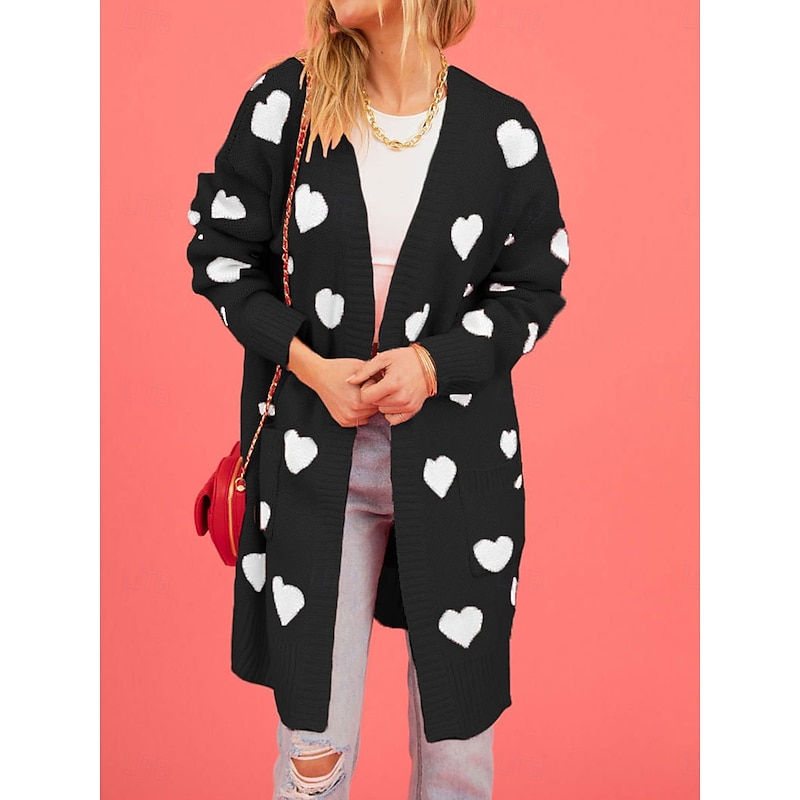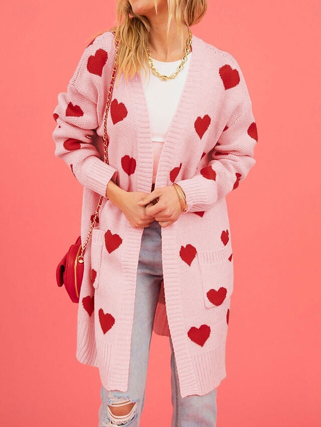 This Women's Valentine Pink Sweater Cardigan Elegant Fashion Streetwear Heart V Neck Pocket Knitted Long Sleeve Long Tops Knit Outdoor Daily Weekend Black Pink Fall Winter combines elegant design with practical functionality. Every detail has been carefully considered to ensure you get the premier possible experience. The first-class construction means this product will serve you well for years to come.