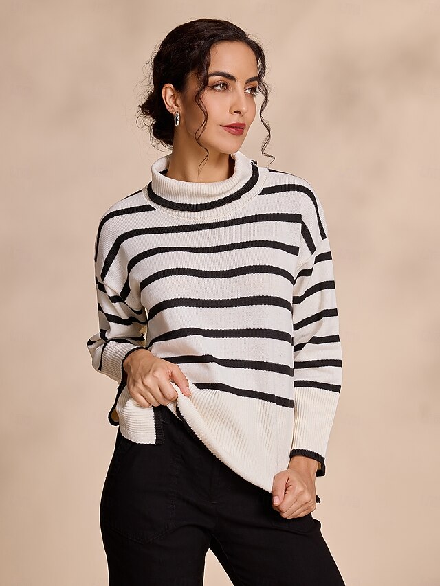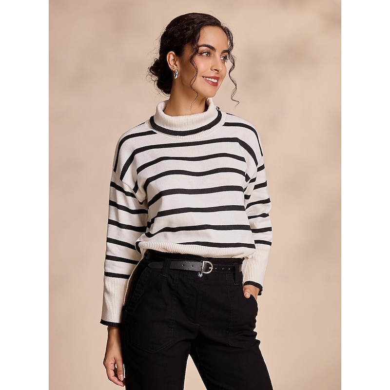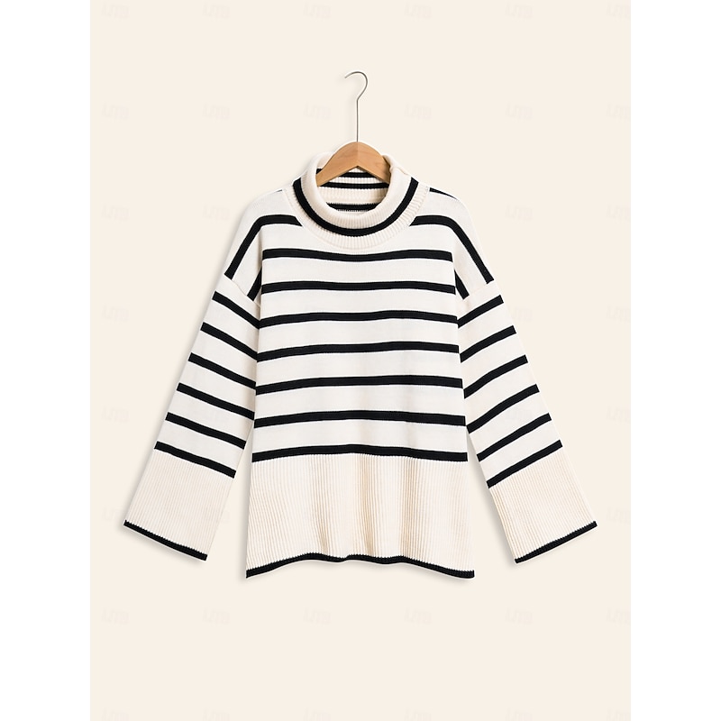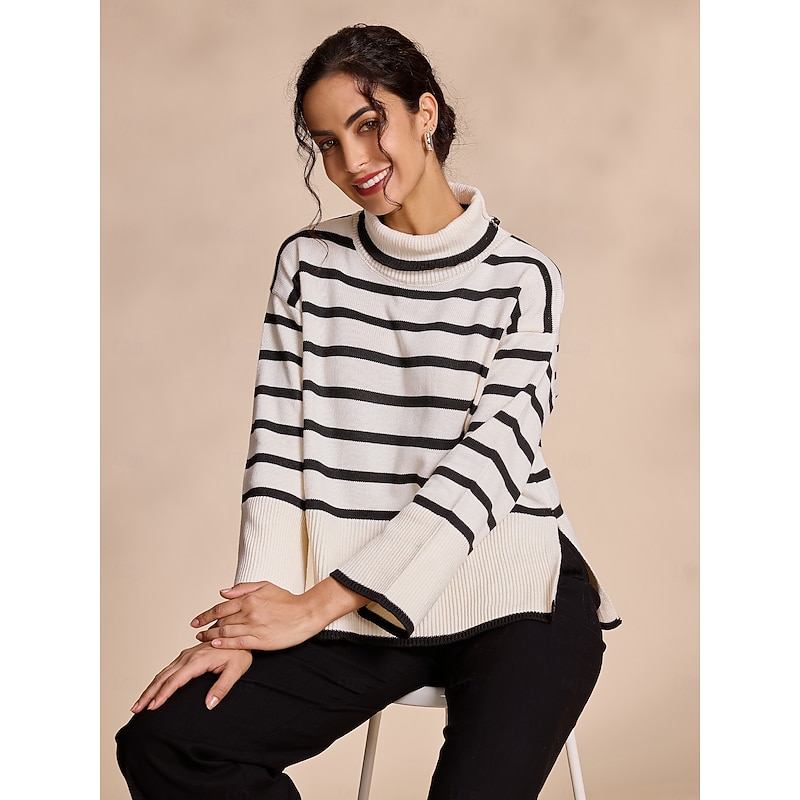 Highlights - Stay cozy in this women's long sleeve turtleneck sweater - Trendy bell sleeves add a fashionable touch - Ribbed knit design for a new-age look and comfortable fit
