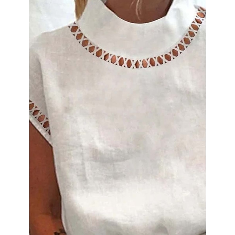 Women's Cotton Linen Shirts Dressy Tops Elegant Sleeveless Crew Neck Regular Tops White Summer Spring 1