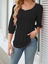 This Women's Shirt Blouse Solid Color Basic Casual 3/4 Length Sleeve Crew Neck Regular Tops Daily Ruched Black White Pink Summer Spring combines elegant design with practical functionality. Every detail has been carefully considered to ensure you get the top possible experience. The first-class construction means this product will serve you well for years to come.