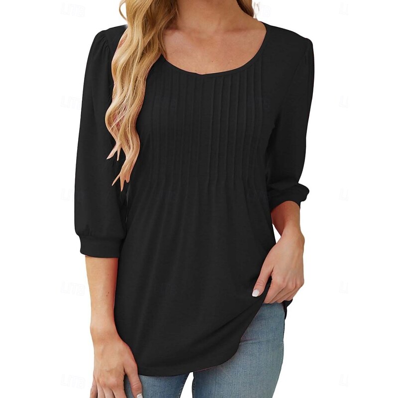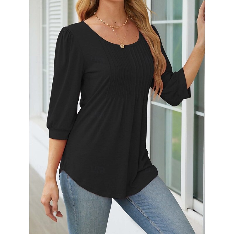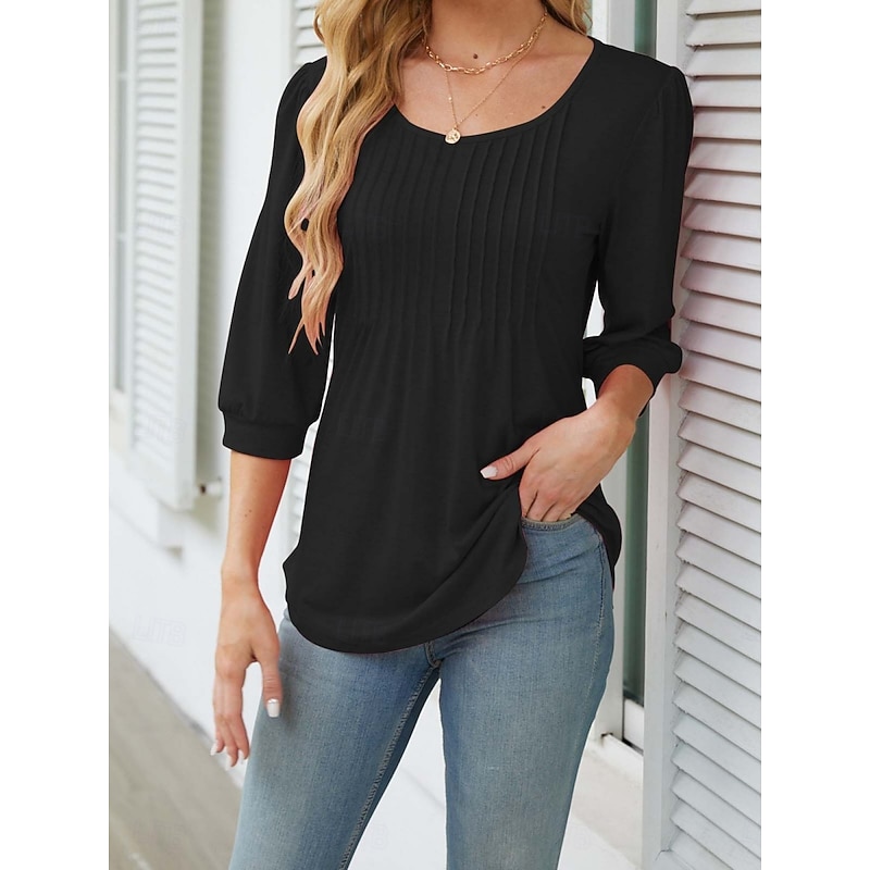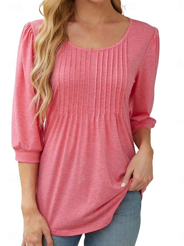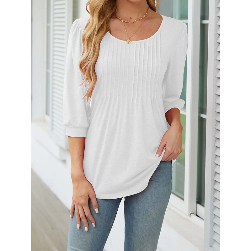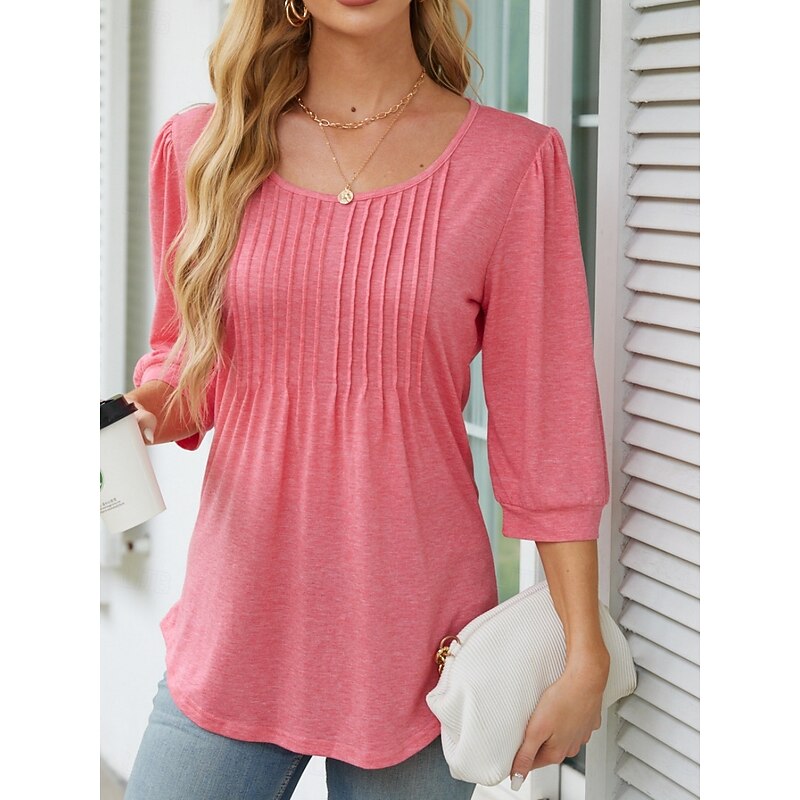 Why Choose Women's Shirt Blouse Solid Color Basic Casual 3/4 Length Sleeve Crew Neck Regular Tops Daily Ruched Black White Pink Summer Spring?