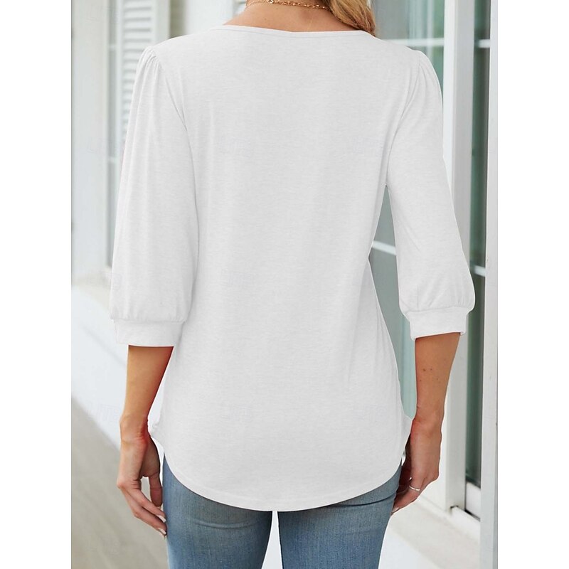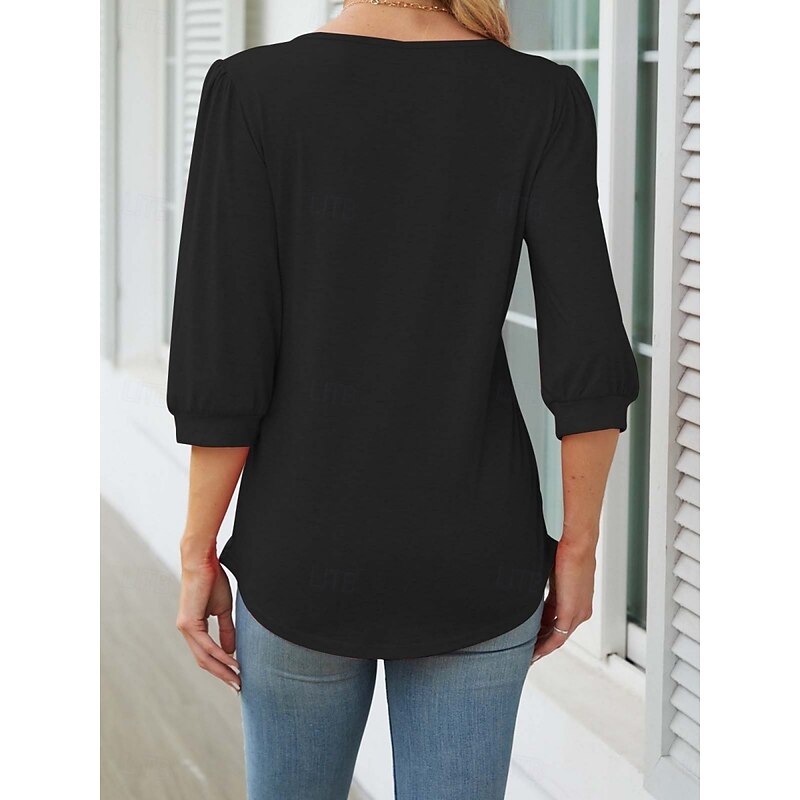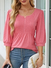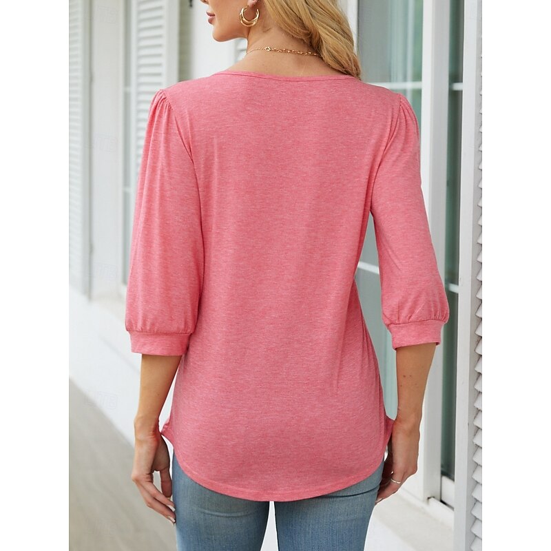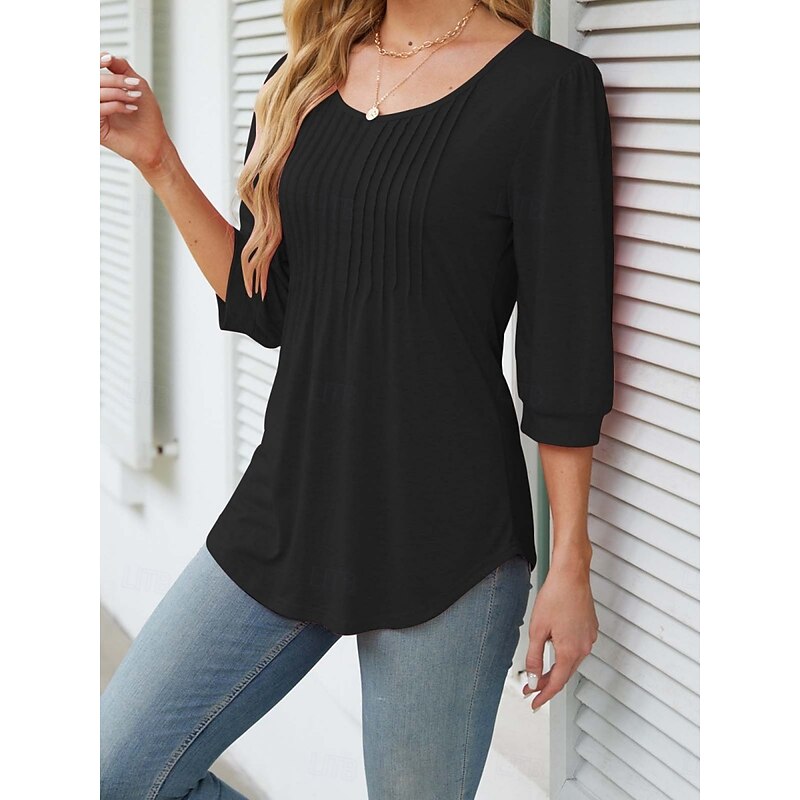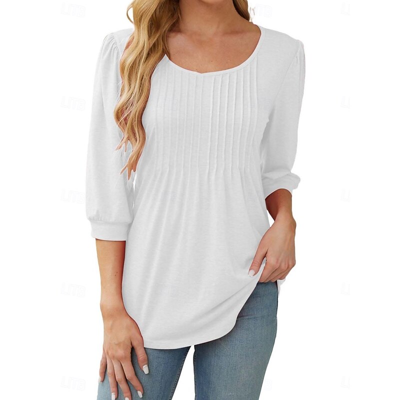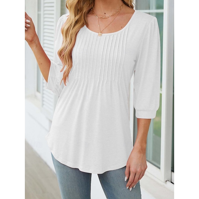 Why Choose Women's Shirt Blouse Solid Color Basic Casual 3/4 Length Sleeve Crew Neck Regular Tops Daily Ruched Black White Pink Summer Spring?
