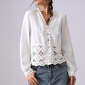 This Women's 100% Cotton Shirt Plain Elegant Bohemia Vintage Long Sleeve V Neck Regular Tops Daily Holiday Going out Lace Off-white-WHITE Summer Spring Fall combines elegant design with practical functionality. Every detail has been carefully considered to ensure you get the finest possible experience. The top-grade construction means this product will serve you well for years to come.