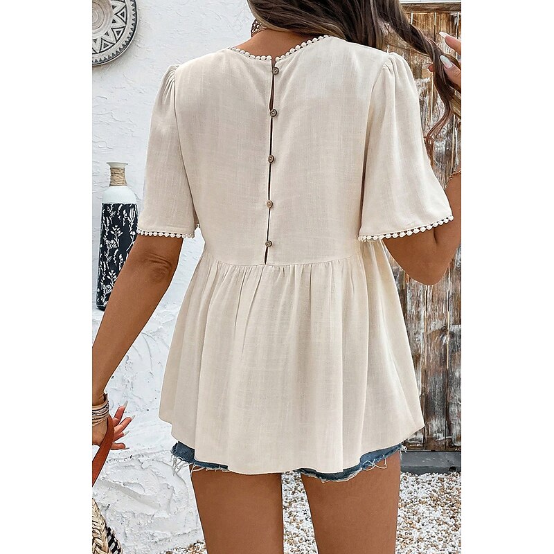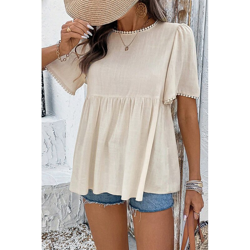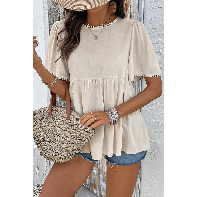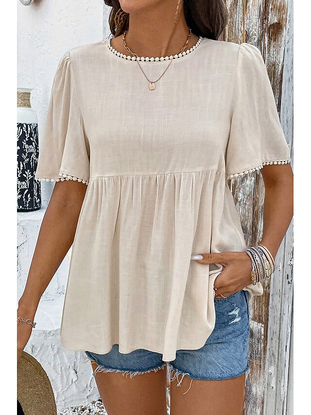 This Women's Linen-Inspired Shirts Blouse Plain present-day Casual Short Sleeve Crew Neck Regular Tops Daily Holiday Going out Ruched Apricot Summer combines elegant design with practical functionality. Every detail has been carefully considered to ensure you get the best possible experience. The first-class construction means this product will serve you well for years to come.