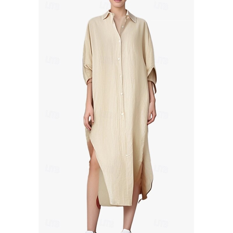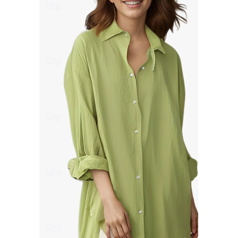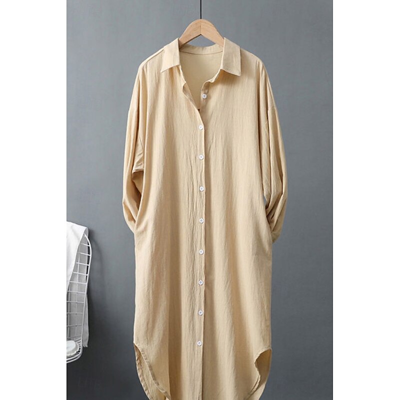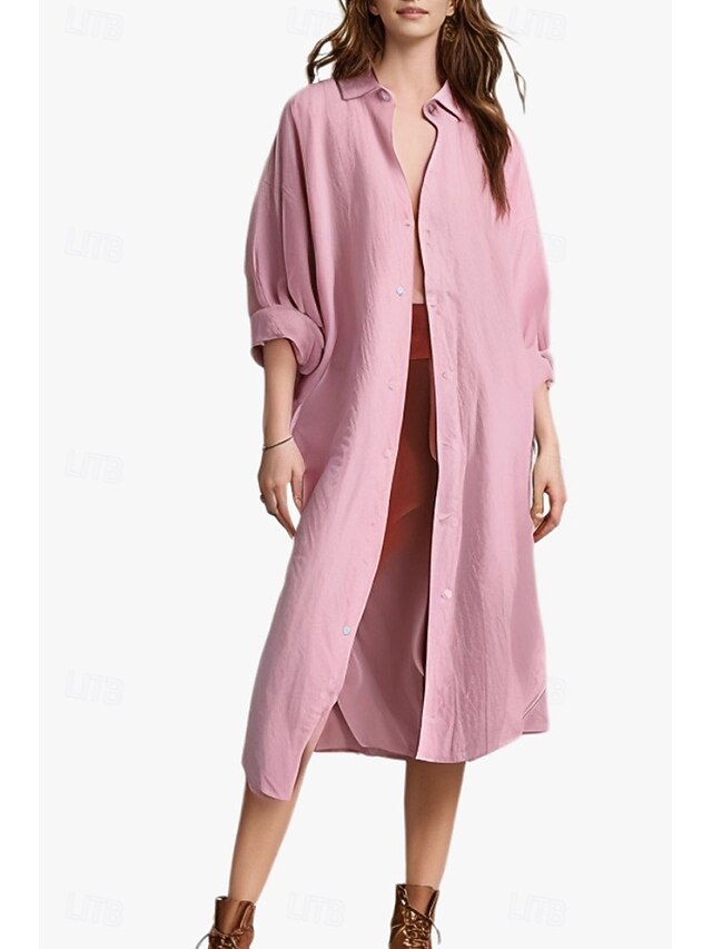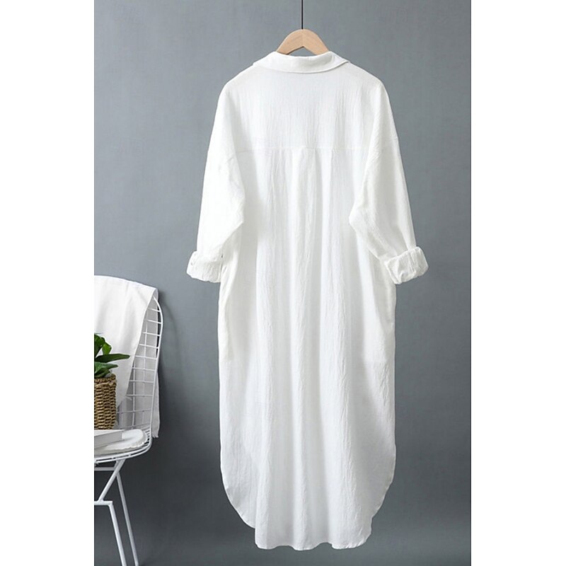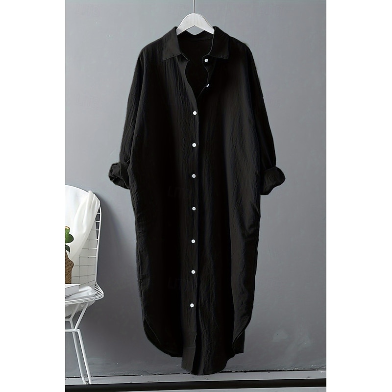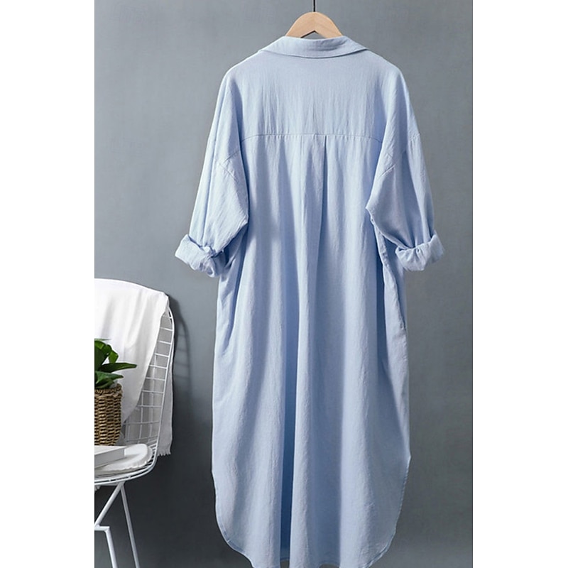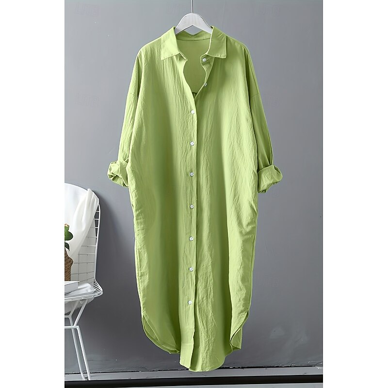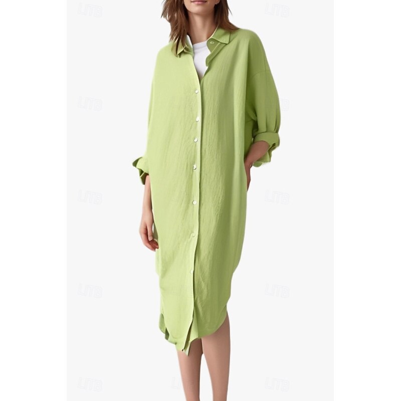 This Women's Midi Dress Shirt Dress Cotton Linen Dress Fashion Basic iconic Vacation Holiday Going out Regular Fit Plain Long Sleeve Shirt Collar Black White Light Green Pink Summer combines elegant design with practical functionality. Every detail has been carefully considered to ensure you get the best possible experience. The first-class construction means this product will serve you well for years to come.