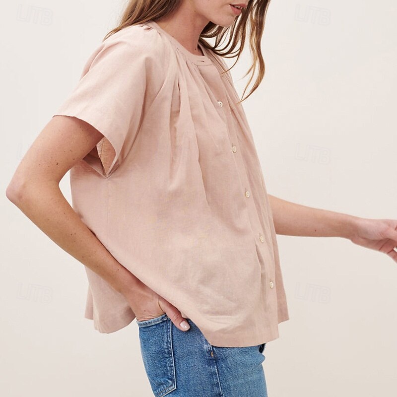 This Women's 100% Cotton Shirt Plain Elegant Vintage Cute Short Sleeve Batwing Sleeve Crew Neck Regular Tops Work Daily Holiday Ruched White Pink Summer Spring combines elegant design with practical functionality. Every detail has been carefully considered to ensure you get the top possible experience. The first-class construction means this product will serve you well for years to come.