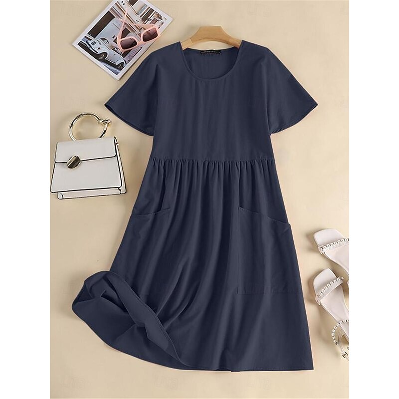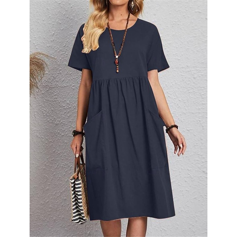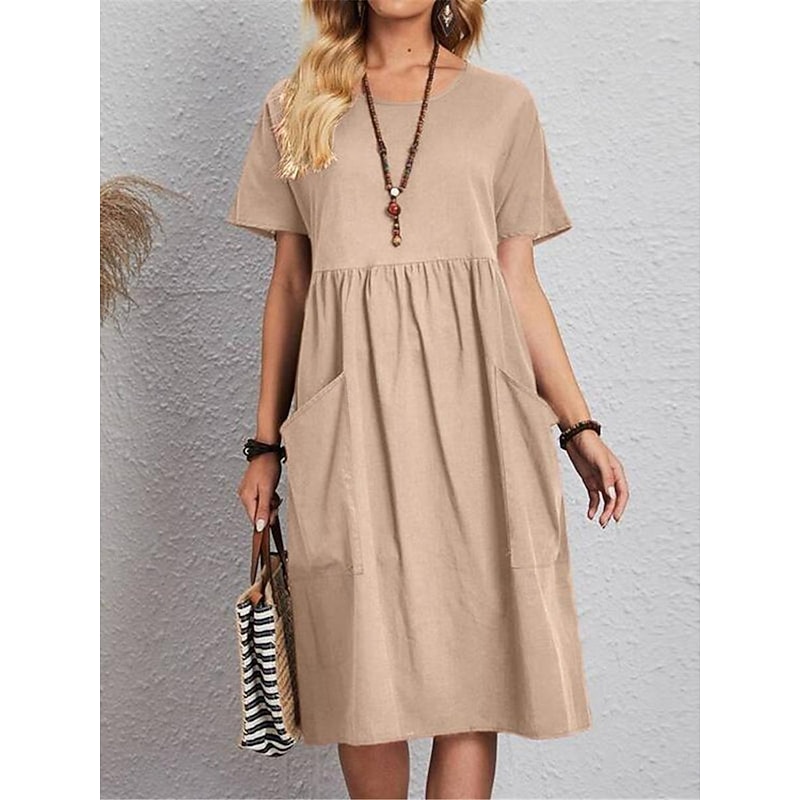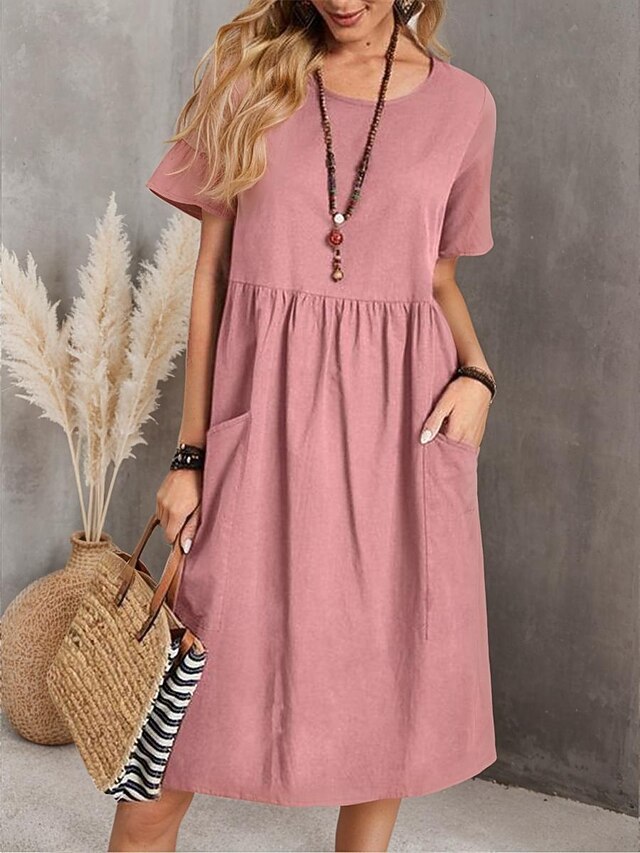 This Women's Pink Navy Blue Brown Summer Spring Midi Dress Linen-Inspired Dresses Cotton Linen Dress A Line Dress Casual Daily Weekend Loose Fit Plain Crew Neck combines elegant design with practical functionality. Every detail has been carefully considered to ensure you get the top possible experience. The first-class construction means this product will serve you well for years to come.