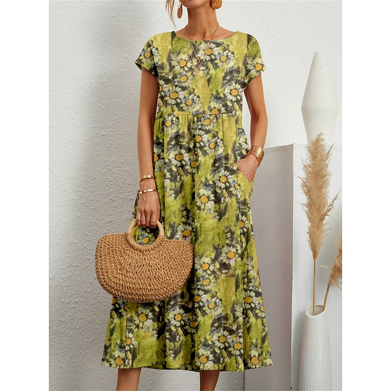 This Women's Black Yellow Summer Spring Midi Dress Linen-Inspired Dresses Casual Dress Fashion Ethnic Style Casual Outdoor Vacation Daily Loose Fit Geometric Flower Crew Neck combines elegant design with practical functionality. Every detail has been carefully considered to ensure you get the top possible experience. The first-class construction means this product will serve you well for years to come.