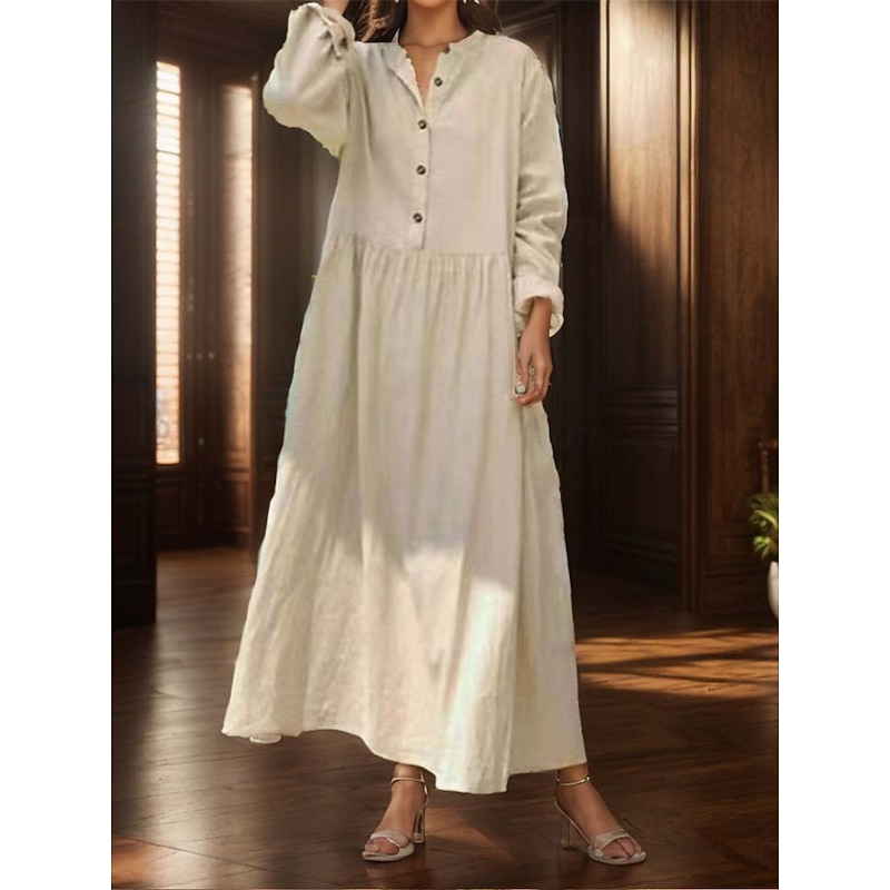 More information about Women's Long Dress Maxi Dress Linen-Inspired Dresses Cotton Linen Dress Hawaiian Regular Fit Solid Color Long Sleeve Crew Neck claret Beige Summer Spring