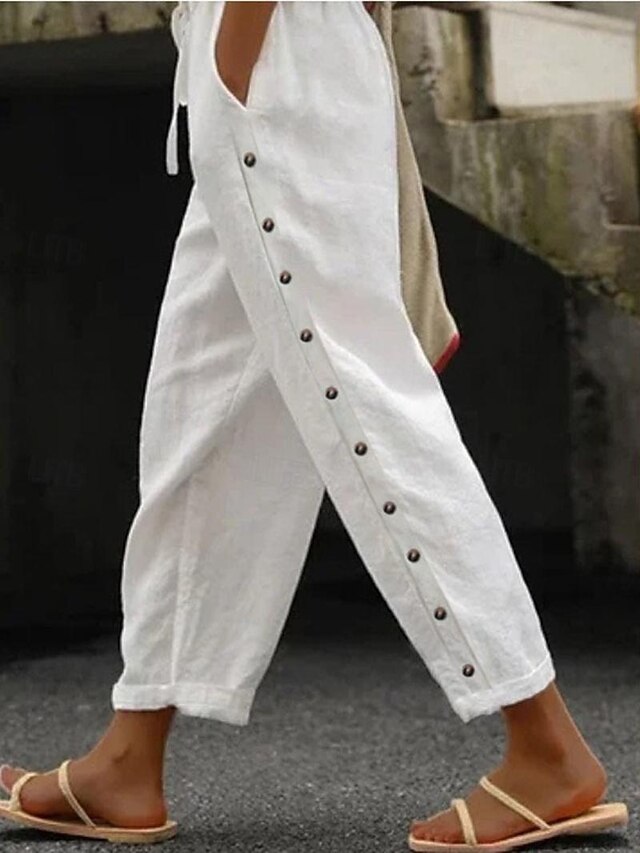 More information about Women's Cotton Linen Pants Pants Trousers Casual Daily Ankle-Length Plain Side Pockets Breathability relaxing Inelastic Weekend Black White Blue Khaki Spring & Summer Regular Fit