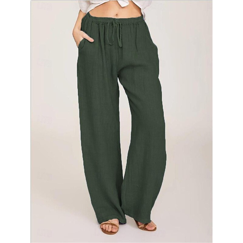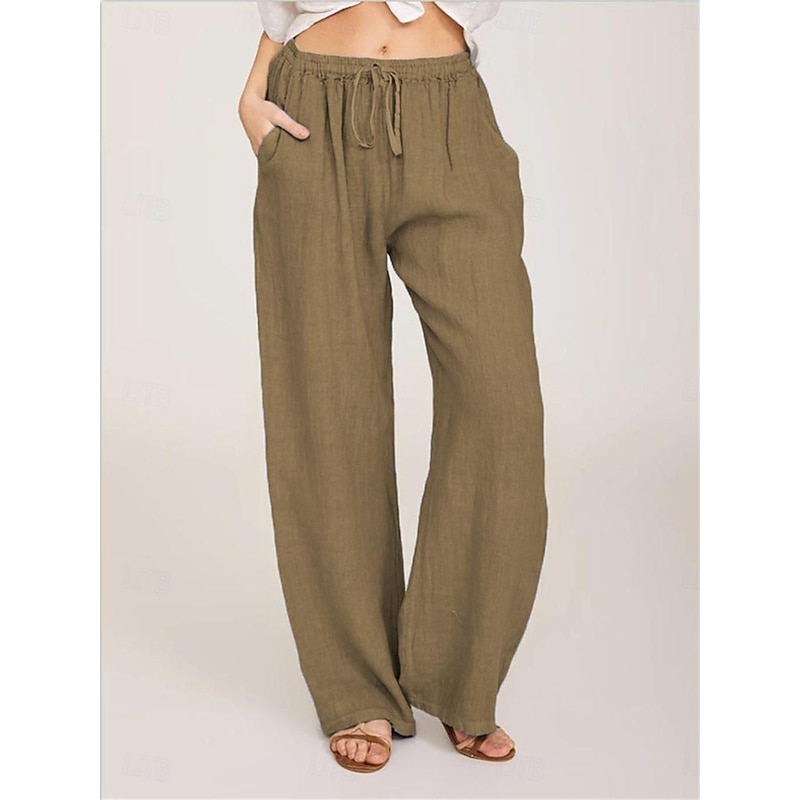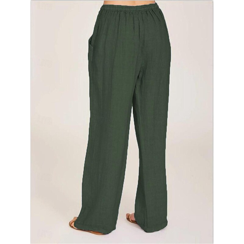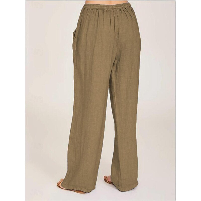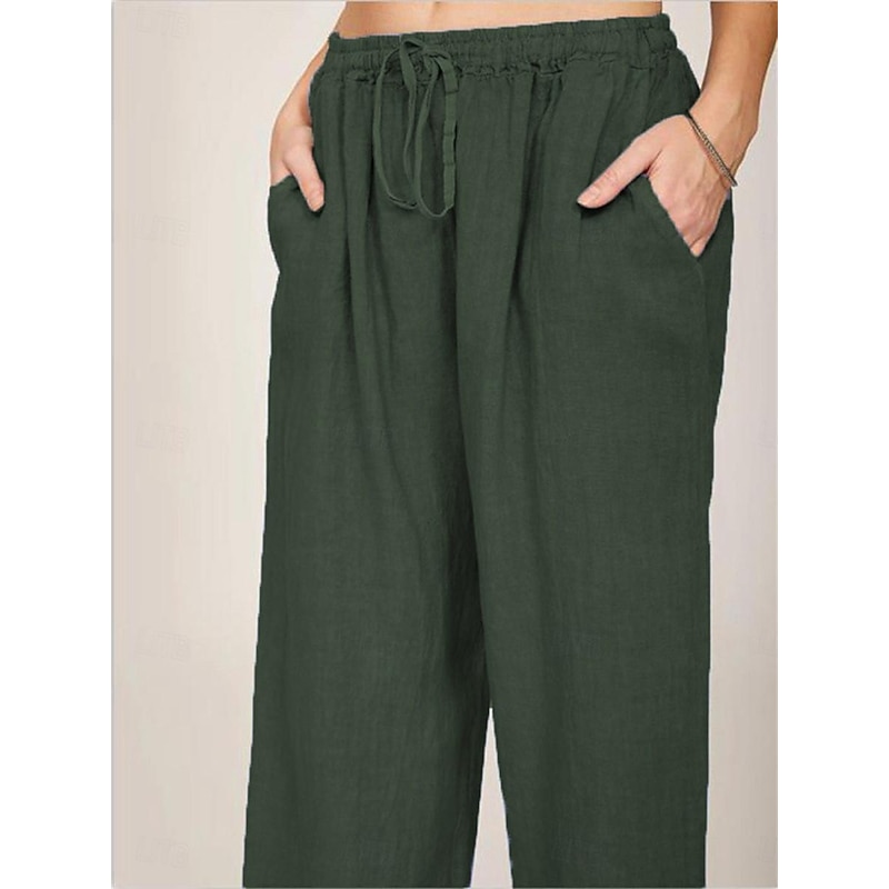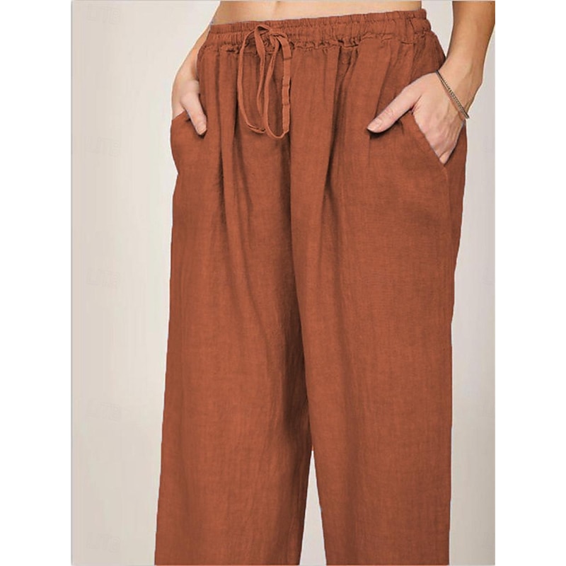 More information about Women's Cotton Linen Pants Comfort Pure Color Pocket Elastic Waist Breathable Micro-elastic Home Black White Wine Navy Blue Summer