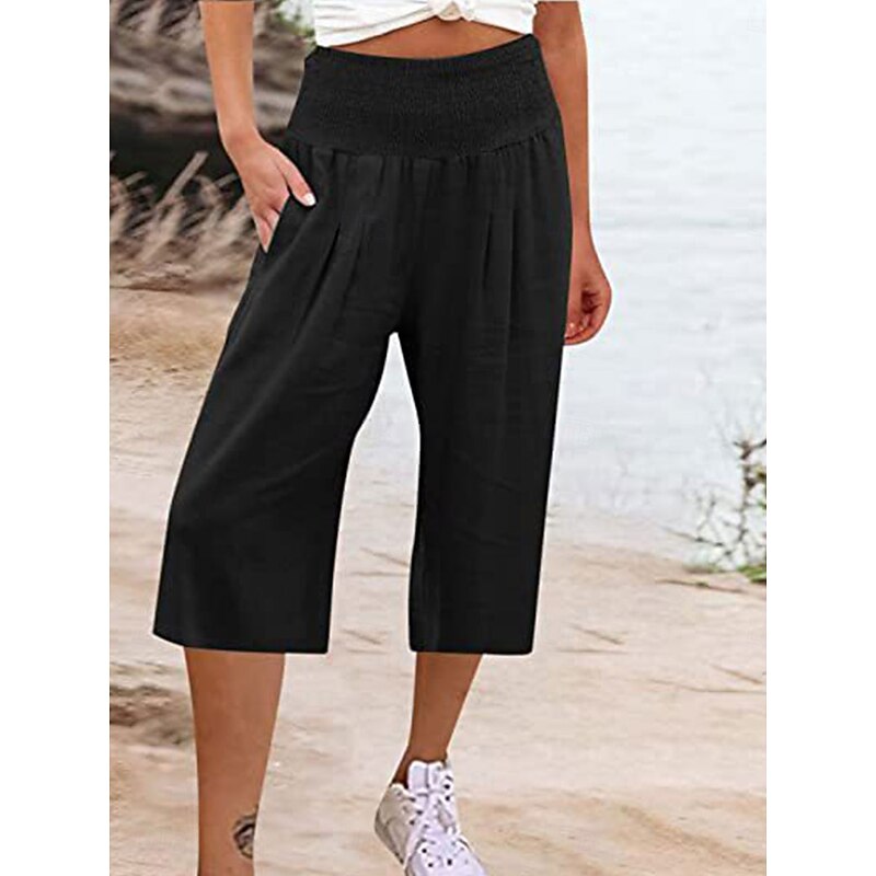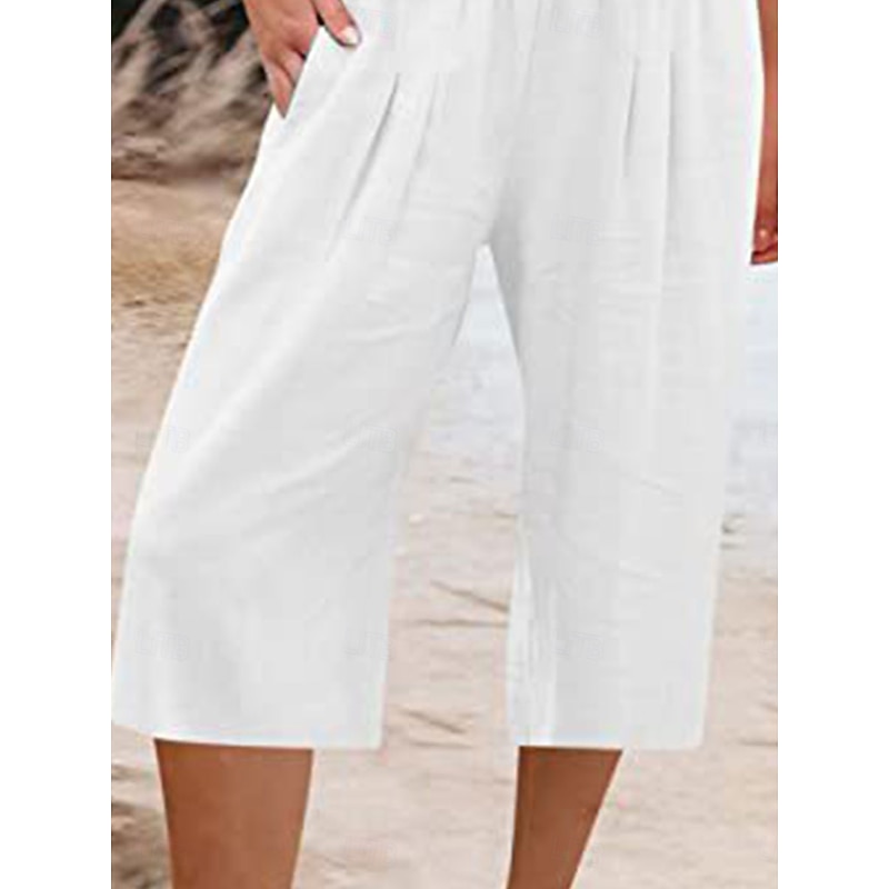 More information about Women's Cotton Linen Shorts Linen-Inspired Pants Cotton Linen Pants Fashion Streetwear Basic Calf-Length High Waist Plain Pocket Elastic Waistband Comfort Outdoor Micro-elastic Vacation Street Daily