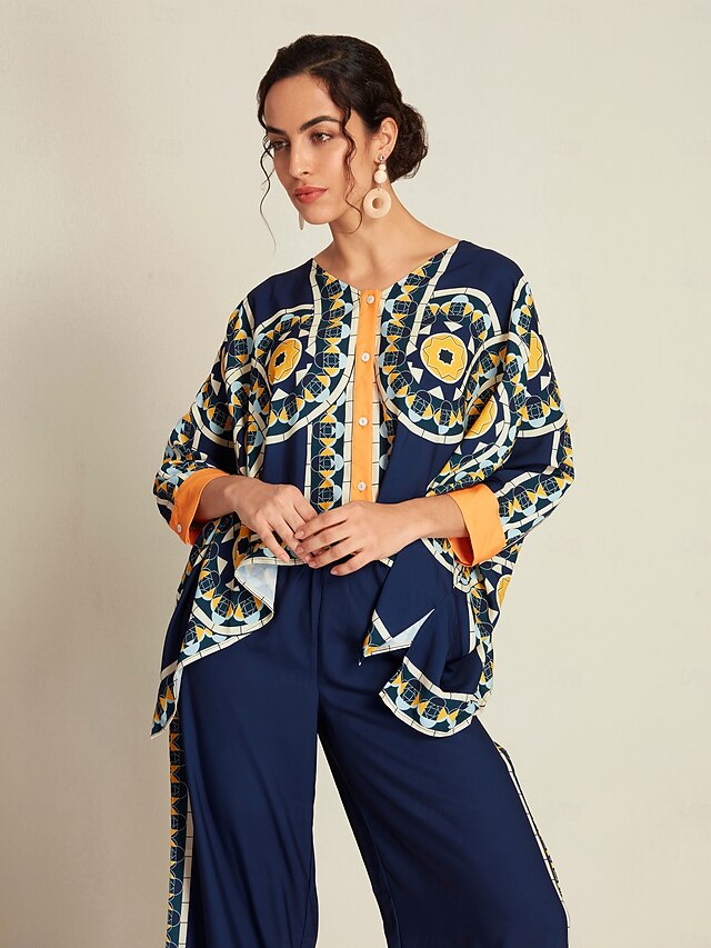 This Women's Blouse Navy Blue Folk Magyar Long Sleeve V Neck Irregular Hem Casual Daily Cross Seasons combines elegant design with practical functionality. Every detail has been carefully considered to ensure you get the supreme possible experience. The supreme construction means this product will serve you well for years to come.