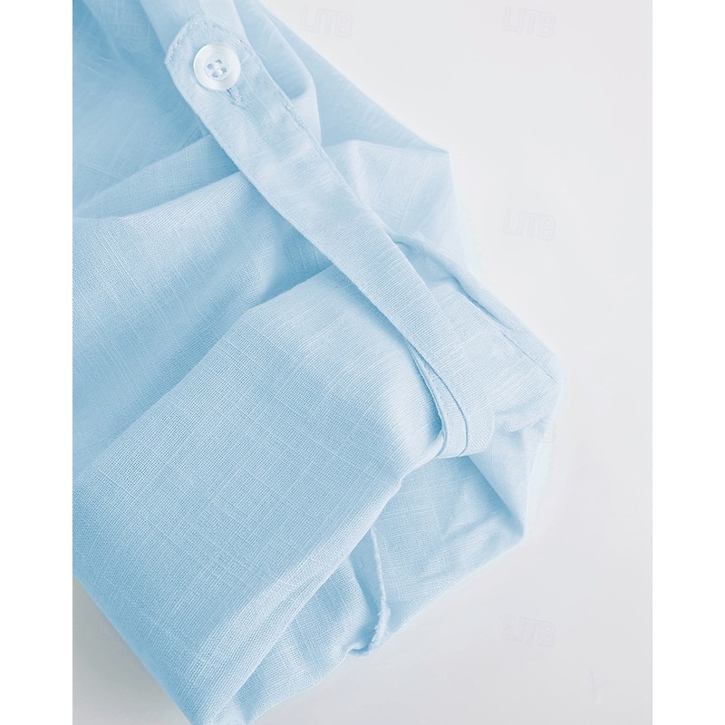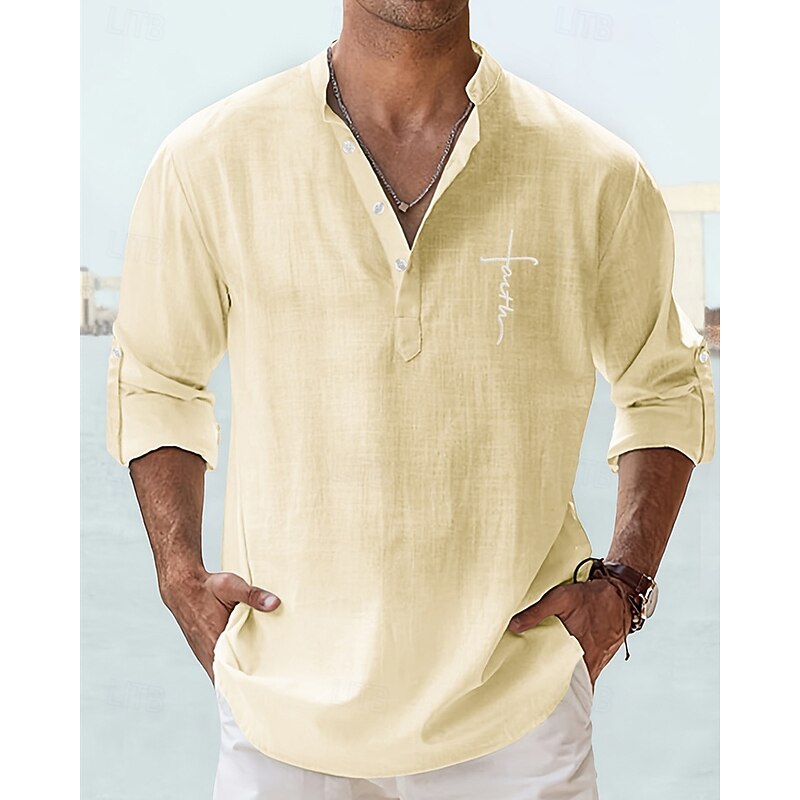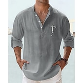 More information about Men's Shirt Linen Shirt Popover Shirt Casual Shirt Cotton Shirt Cross Vacation Hawaiian Black White Yellow Pink Long Sleeve Band Collar Spring Fall Clothing Apparel Print