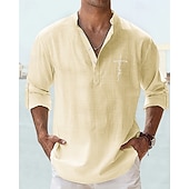 popular ! Men's Shirt Linen Shirt Popover Shirt Casual Shirt Cotton Shirt Cross Vacation Hawaiian Black White Yellow Pink Long Sleeve Band Collar Spring Fall Clothing Apparel Print