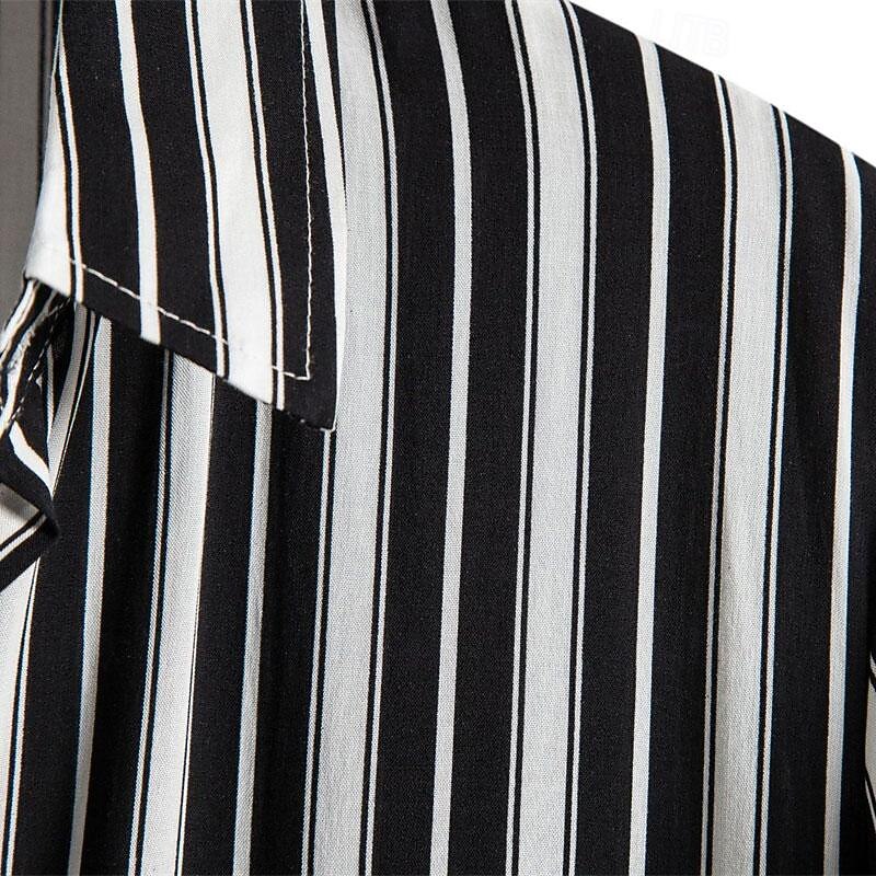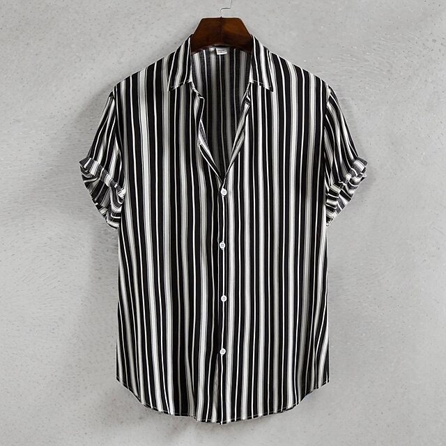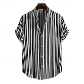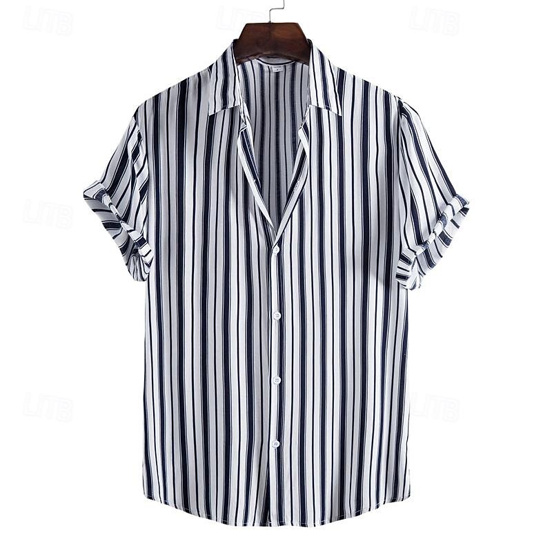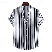 More information about Men's Shirt Summer Shirt Casual Shirt Beach Shirt Button Up Shirt Striped Shirts Black Navy Blue Short Sleeve Stripes Turndown Vacation Hawaiian Clothing Apparel Cotton Cotton Blend Fashion Casual