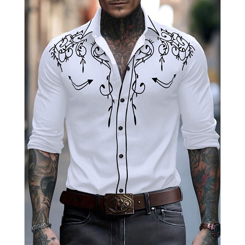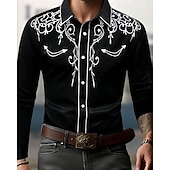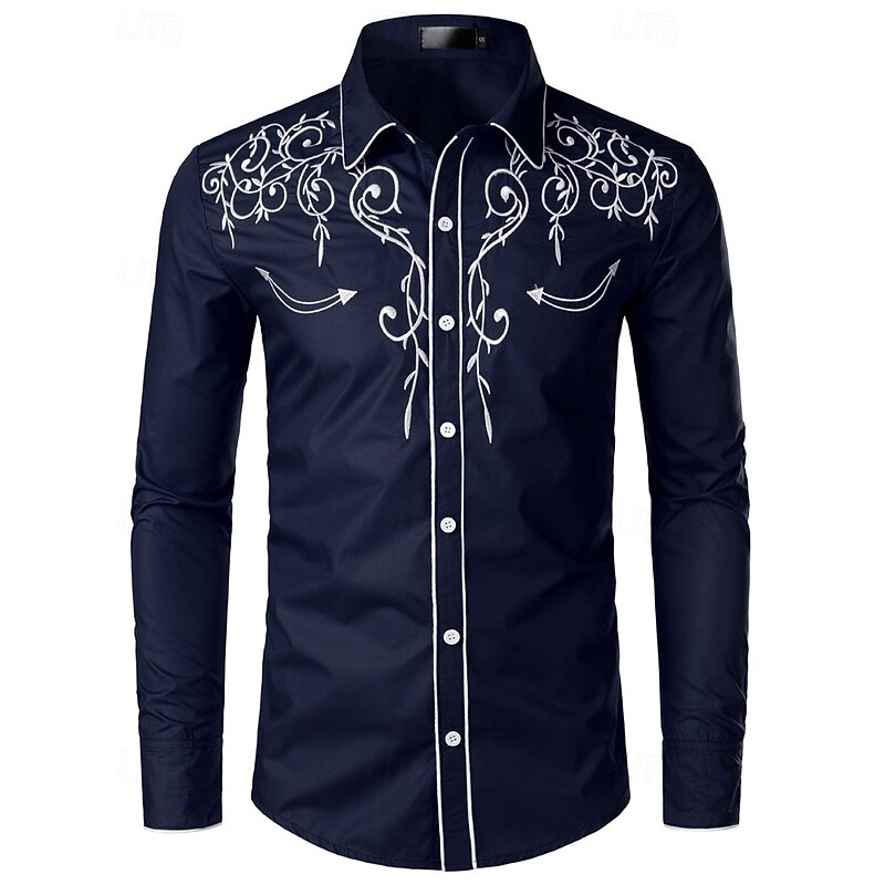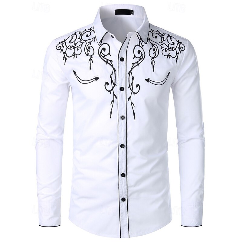 More information about Men's Shirt Summer Shirt Casual Shirt Beach Shirt Button Up Shirt Black White Red Navy Blue Long Sleeve Pattern Lapel Vacation Hawaiian Embroidered Clothing Apparel Cotton Polyester Fashion Casual
