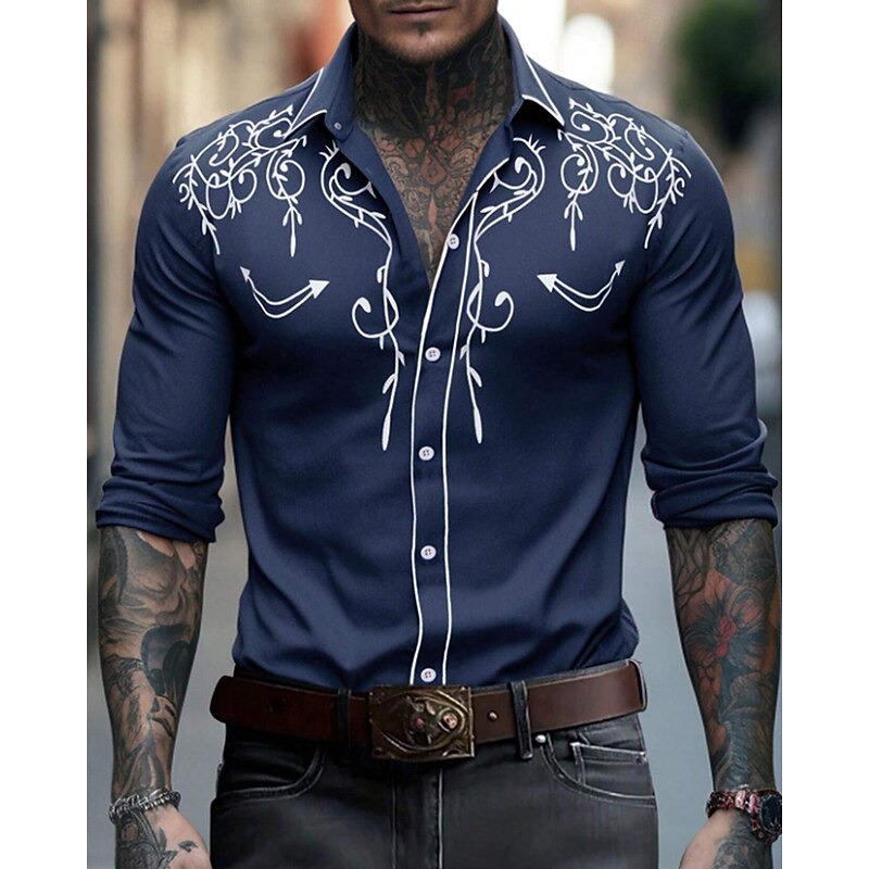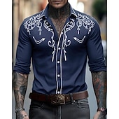 Men's Shirt Summer Shirt Casual Shirt Beach Shirt Button Up Shirt Black White Red Navy Blue Long Sleeve Pattern Lapel Vacation Hawaiian Embroidered Clothing Apparel Cotton Polyester Fashion Casual 17