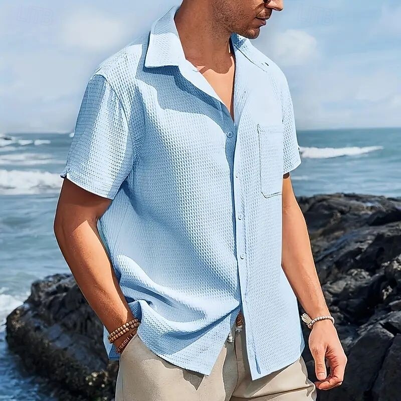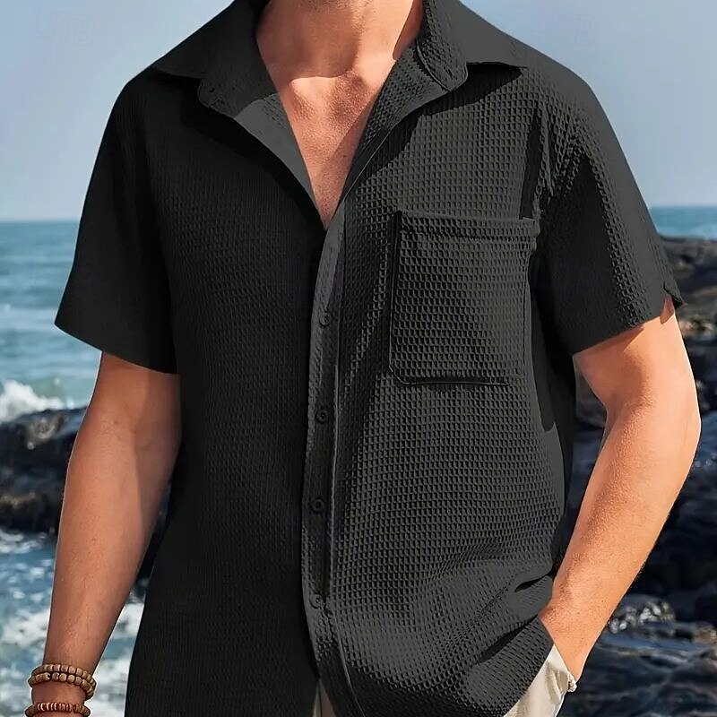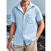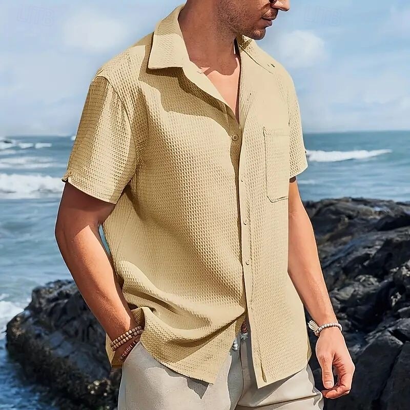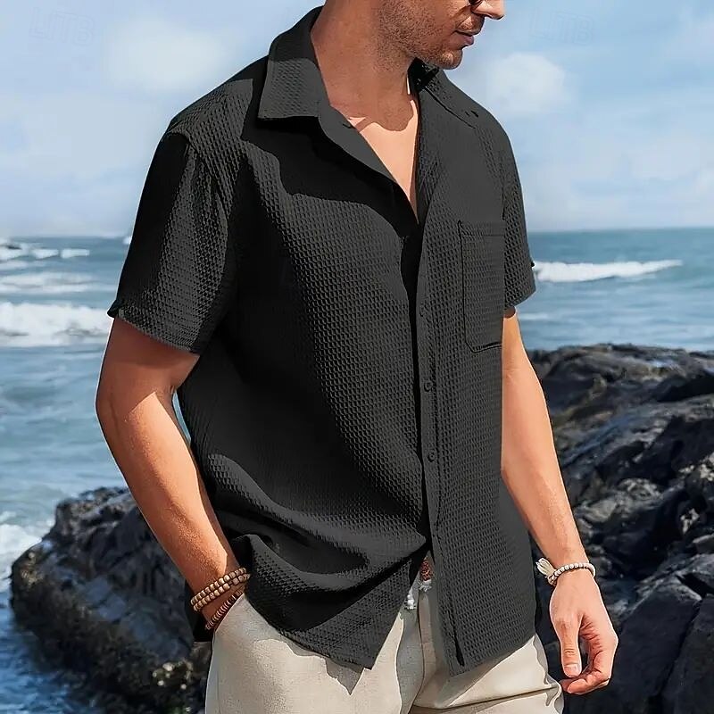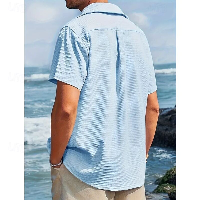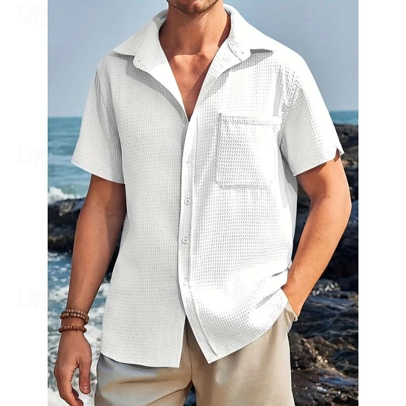 Highlights [Fabric] Crafted from high-quality acetate fiber with a waffle knit texture, this men's shirt blends comfort and style, providing breathability and a micro-elastic fit that's perfect for warmer seasons like spring and fall. [Fit and Style] The shirt features a comfortable, casual fit with a classic button-down design and a turndown neckline. Its short sleeves and loose cut ensure ease of movement, making it an ideal choice for a laid-back day out or a casual work environment. [Design Highlights] With practical details like a convenient chest pocket, this shirt adds functionality to its fashion-forward design. The textured, solid-color fabric gives it a new-age and versatile appeal, allowing it to be easily paired with various outfits. [Occasions] Perfect for vacations, holidays, casual daily wear, or streetwear, this shirt offers versatility and style for different casual settings. Whether heading to the beach or a relaxed weekend gathering, it provides a fashionable, comfortable option. [Size Range] Available in a wide range of sizes from S to 3XL, catering to diverse body types and preferences, ensuring the right fit for everyone seeking a timeless piece in their wardrobe.