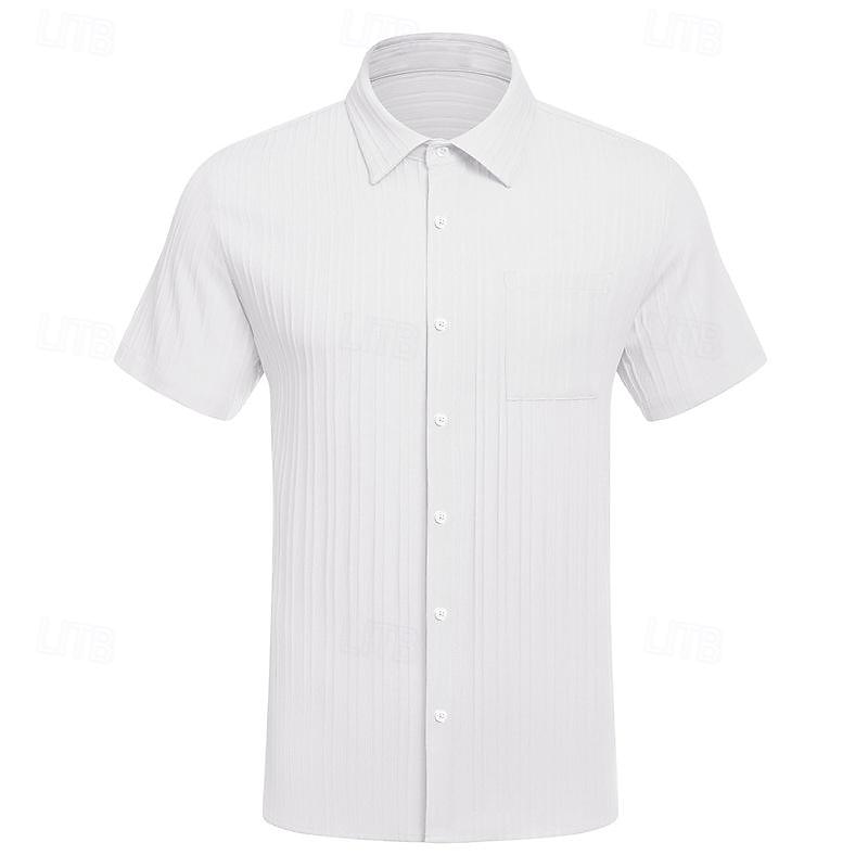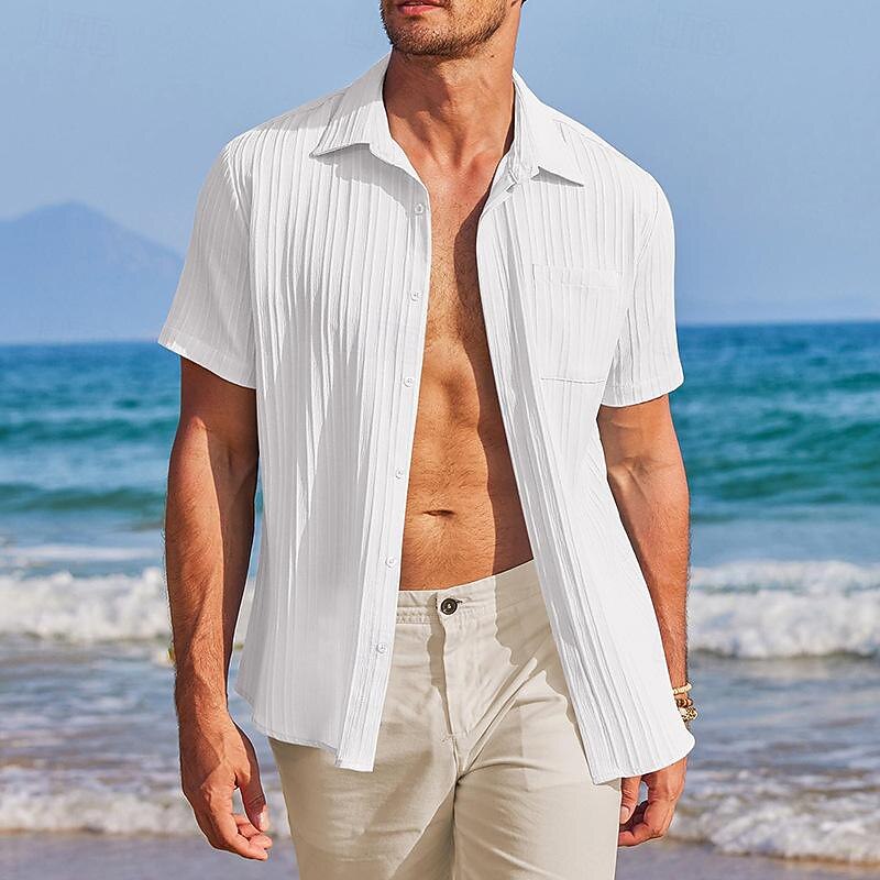 More information about Men's Shirt Summer Shirt Casual Shirt Beach Shirt Button Up Shirt White Light Blue Short Sleeve Plain Lapel Vacation Hawaiian Front Pocket Clothing Apparel Polyester Fashion Casual relaxing