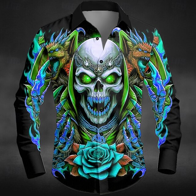 $25.99 - Halloween Men's Skull Devil Neon Glow Shirt Button Up Shirt Long Sleeve Dark Gothic Style Holiday Streetwear Spring Fall Turndown 3D Print Collared Shirts Rose+Black Black and Blue Black / Purple 2025. Shop for cheap Halloween Shirts online? Buy at lightinthebox.com on sale today!