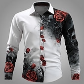 popular ! Men's Floral Print Halloween Costumes Day of the Dead Shirt Button Up Shirt Long Sleeve Dark Gothic Style Holiday Streetwear Summer Spring Turndown 3D Print Collared Shirts Black White
