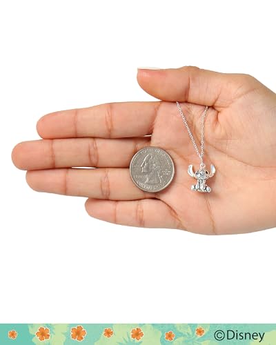 Disney Lilo & Stitch Sterling Silver Necklace for Women, 3D Pendant Stitch Necklace with 18-inch Chain Official License 3