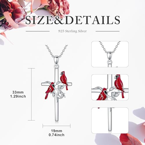 Diamond Cross Necklace for Women Red Cardinal Necklace 925 Sterling Silver Cross Pendant Necklace Jewelry Gifts for Women 6