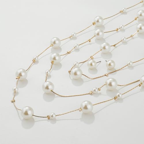 popular ! Vintage Pearl Multi Strand Necklace for WomenPearl Tassel Long Chain Necklace Set with Pearl Studs Boho Dainty Beads Layered Necklace Retro Prom Wedding Dress Jewelry Accessories