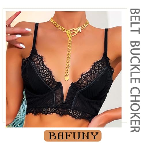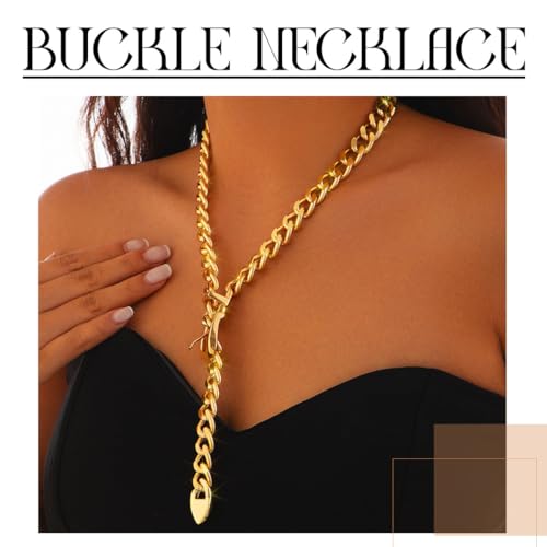 Chunky Gold Choker Punk Belt Buckle Collar Necklace Long Y-Necklace Thick Chain Neck Jewelry for Women 7