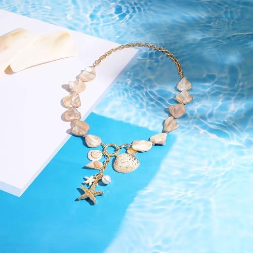 popular ! Coiris Starfish Seashell Necklace for Women Pearl Shell Natural Summer Beach Jewelry for Women(N0134-Pearl)